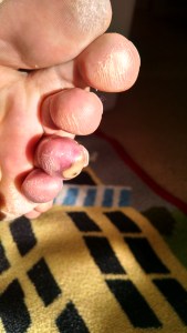 Below are some pictures I’ve taken of my feet and toes for those interested. I know it’s not pretty, but maybe you’re experiencing the same issues. These areas are intensely painful, far worse than any bruises I’ve ever had. My feet and toes have this on spots that touch as I walk. The spots on my ankles, feet and legs are all from pressure. Pressure from having crossed my legs one day a year and half ago, or from where my son sat on my lap. On my feet from walking, even though I wear the softest, most supportive squishy shoes and obviously cannot walk far or often. Even laying in bed will cause considerable pain on all areas that touch the bed. This is a global issue for me, but feet and lower legs are the worst. This is just one layer of pain, I have multiple layers for different reasons.